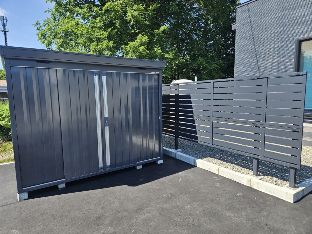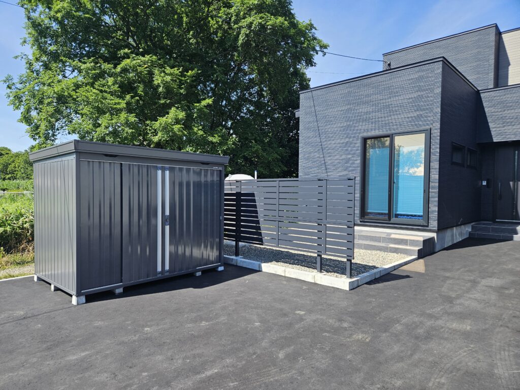 アスファルト舗装/フェンス/L型ブロック土留/物置